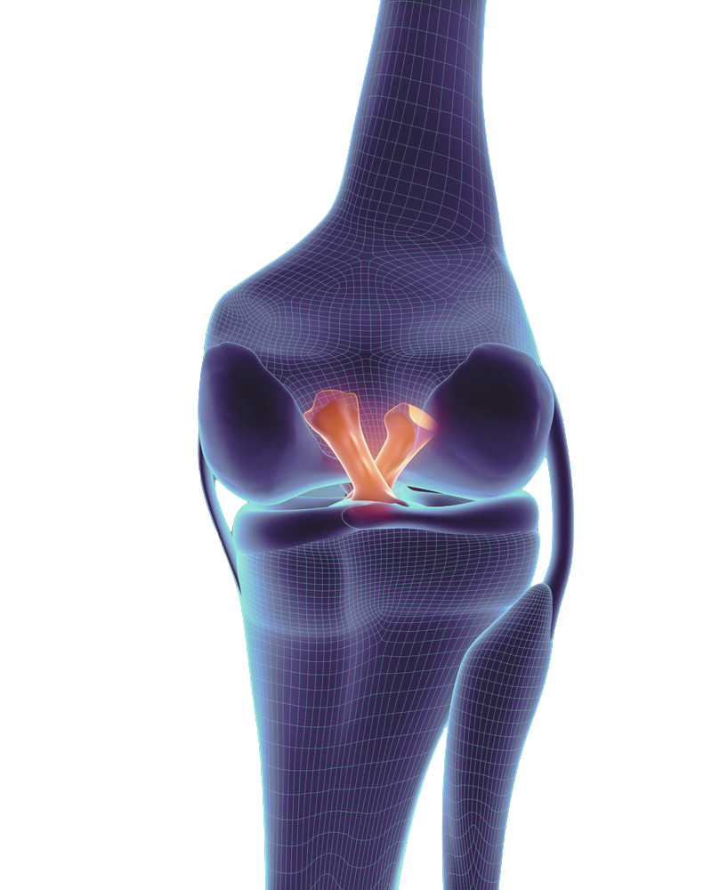 Il existe deux ligaments croisés. Situés au milieu du genou, ils permettent de stabiliser l’articulation lors des mouvements en torsion du genou.